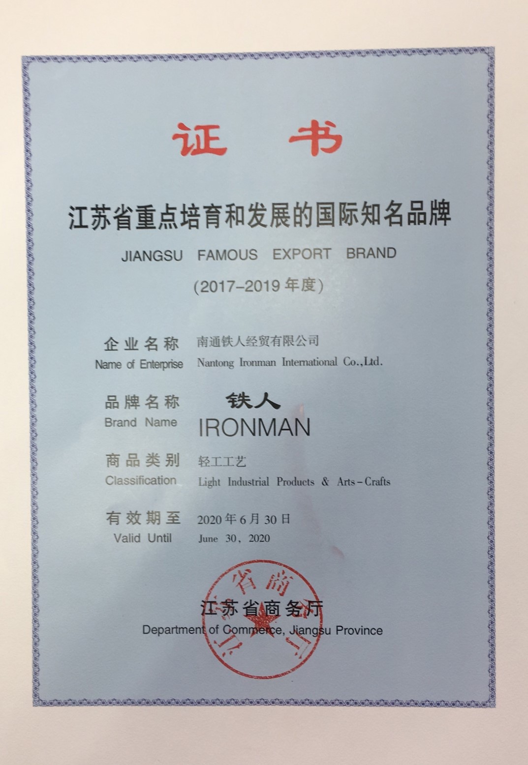 | 2018 | 江蘇省重點培育和發展的國際知名品牌 | 江蘇省商務廳 |